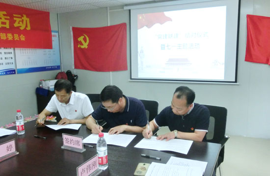程全根对文华改扩建工程项目支部“党建联建”工作作出布署,陈风雷宣读了《党建联建、共促建设活动实施方案》,褚跃明介绍了公司党建情况,并对本项目“党建联建工作”作出承诺。