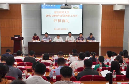 本网讯 9月18日,学校2017-2018年新进教职工培训开班典礼在下沙校区举行。校长钟晓敏出席典礼并讲话。副校长励如孟主持典礼。人事处、教务处、科研处、研究生院负责人及全体新进教职工参加开班典礼。