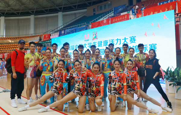 本网讯 10月24日至29日,第十四届中国大学生健康活力大赛暨中国大学生健美操锦标赛在淳安举行。经过激烈角逐,我校运动健儿斩获7金1银1铜,并获团体积分赛第一名的好成绩。