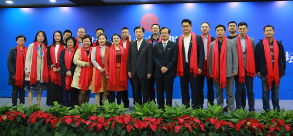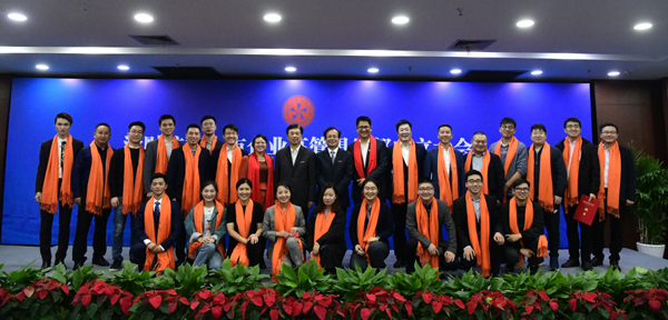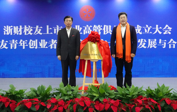 黄建新和陈金方分别为校友上市公司高管俱乐部与校友青年创业者俱乐部理事会成员颁发聘书并与俱乐部主席共同揭牌。