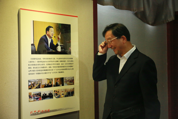 在陈金方陪同下,黄大使还参观了“外交官进校园”展览馆。黄大使对我校20余年坚持开展“外交官进校园”活动表示赞赏。他说,外交部最近也开始举办这样的活动,这对开拓学生眼界,培养国际视野是很有现实意义的,值得长期推进。黄大使欣然为我校题词:“祝浙江财大‘外交官进校园’活动持之以恒,推陈出新,造就治国英才!”