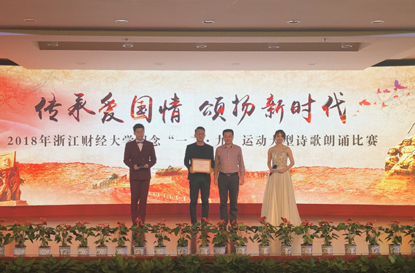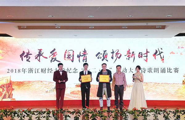 14支参赛队伍将乐器伴奏、舞蹈、话剧等形式融入诗歌朗诵,或声情并茂、或铿锵有力,表达了广大师生对革命先辈的深切缅怀和对改革开放40周年成果的热情歌颂,深深打动了在场的每一位观众。