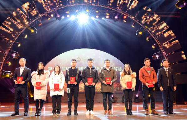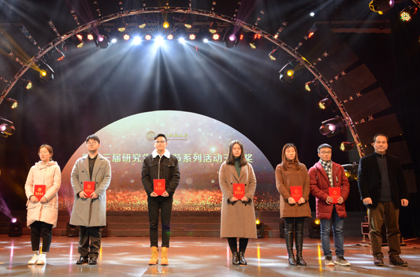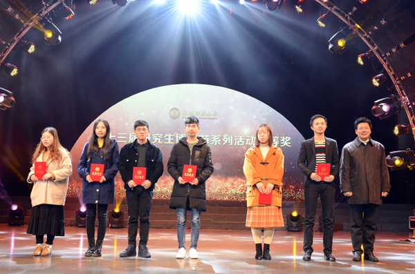 颁奖典礼上,校领导为第十三届研究生博文节系列活动获奖代表颁奖。