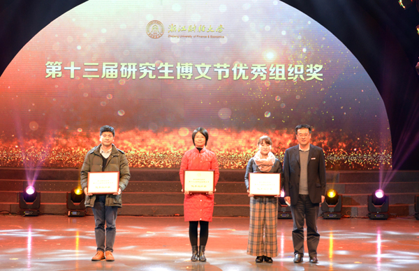 本网讯 12月11日晚,学校第十三届研究生“博文节”颁奖典礼暨汇报演出在下沙校区文化中心剧场举行。校领导,相关职能部门负责人、各学院分管领导及师生代表出席典礼。来自浙江大学、浙江工商大学等10余所兄弟院校研究生会代表到场观礼。