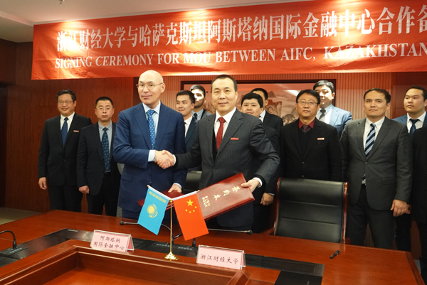 李金昌对客人的到来表示热烈欢迎,并向客人介绍了学校的办学历史、招生情况以及近年来取得的国际化办学成果。他表示,哈萨克斯坦是中国的友好邻邦,是共建“一带一路”、开展国际产能合作的重要合作伙伴。学校积极参与中哈之间的交流合作,并于今年10月成立了国内首家哈萨克斯坦中心、哈萨克斯坦经济社会研究中心。他相信,与阿斯塔纳国际金融中心协议的签署,必将促进学校哈萨克斯坦中心的发展,深化双方在国际金融、人才培养和文化交流等领域的合作,为中哈友谊作出新的更大的贡献。