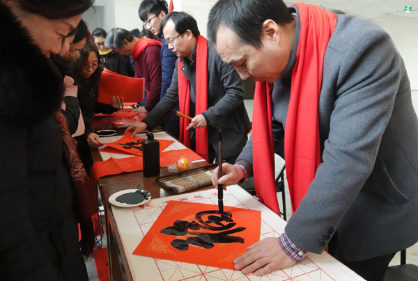 本网讯 1月3日,由校党委宣传部、校工会、校团委共同主办的“写副春联带回家”活动在我校下沙校区举行。党委书记李金昌等校领导与学校退休教职工、书法专业师生一起为全体师生现场挥毫泼墨,写福送福。