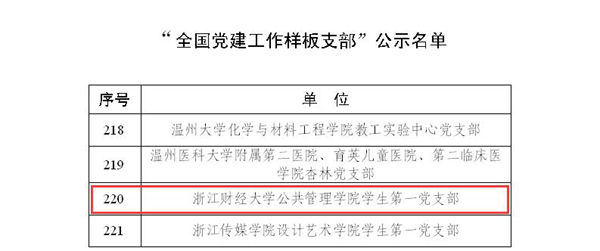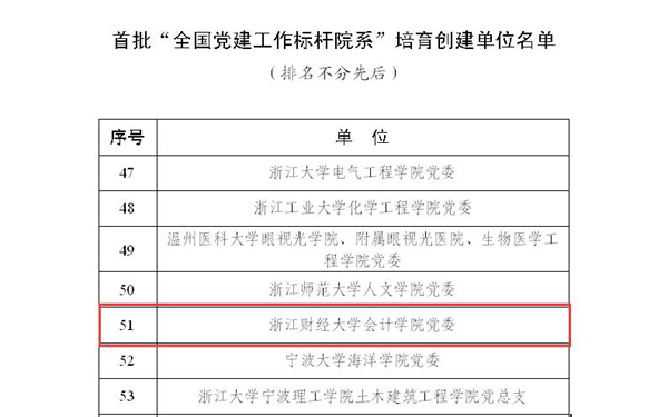 12月,教育部公布了新时代高校党建示范创建和质量创优工作评审结果,我校会计学院党委入选全国党建工作标杆院系培育创建单位,公共管理学院学生第一党支部入选全国党建工作样板支部培育创建单位。