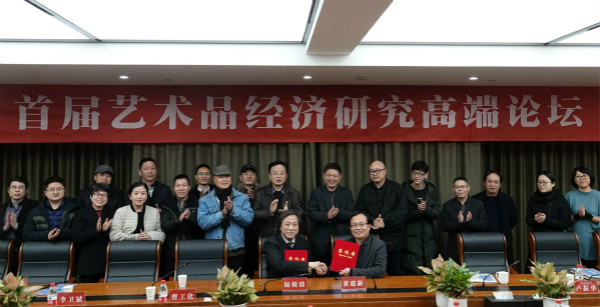 陆镜清与黄建新共同签署了艺术品经济合作框架备忘录,并初步达成了合作意向。
