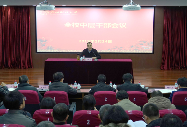 本网讯 2月24日,学校召开会议部署2019年工作。校党委书记李金昌主持会议并讲话。全体中层及以上领导干部参加会议。