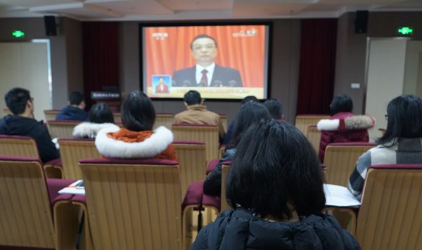 本网讯 3月3日和5日,全国政协十三届二次会议和十三届全国人大二次会议分别在北京开幕。今年的两会是在新中国成立70周年、决胜高水平全面建成小康社会关键之年召开的一次重要会议。我校师生通过电视、网络、手机等渠道,认真收听收看全国两会开幕盛况,认真聆听李克强总理的政府工作报告,热切关注两会动态。各级党组织迅速掀起学习热潮,结合工作实际,认真组织师生谈心得、谈体会,不断推动两会精神入脑、入耳、入心。