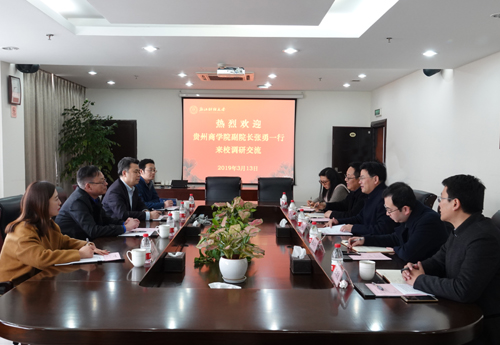 张勇对学校的热情接待表示感谢,并介绍了贵州商学院的基本情况。双方围绕师资队伍建设、经管类专业实验平台建设、教育教学改革等方面进行了交流。