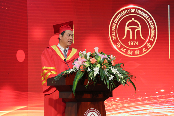 本网讯 3月21日,学校2019届研究生毕业典礼暨2017-2018学年研究生表彰大会在下沙校区举行。校领导李金昌、黄建新、陈金方、王奎泉、励如孟、李占荣、徐晓东、邵毅平出席大会。研究生院负责人、各学院领导、研究生导师代表、全体毕业生及亲友代表等参加典礼。典礼由副校长王奎泉主持。