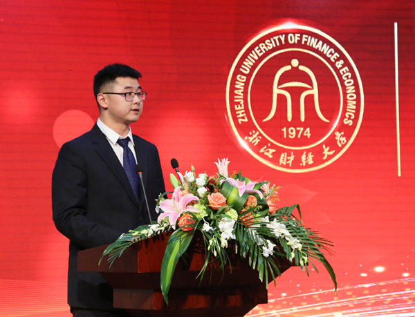 导师代表张帅、毕业生代表王嘉慧、在校研究生代表付伟康分别在典礼上发言,毕业生代表张凯带领全体毕业生宣读毕业誓词。