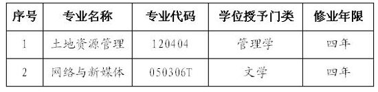 本网讯 近日,教育部公布了2018年度普通高等学校本科专业备案和审批结果,我校申请的土地资源管理、网络与新媒体两个专业成功获批,可于2019年开始招生。