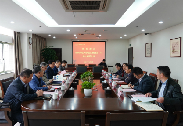 蔡文浩对学校的热情接待表示感谢,对学校近年来快速发展取得的成绩表示赞赏,并介绍了兰州财经大学近年来各项工作开展情况,希望两校深化友谊,加强合作,共同促进学校事业发展。