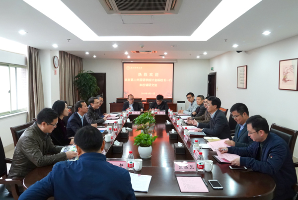 计金标对我校的热情接待表示感谢,对我校近年来的快速发展表示赞赏,并介绍了北京第二外国语学院的基本情况,希望两校深化友谊,加强合作,不断促进双方事业向前发展。