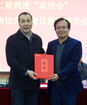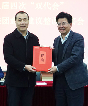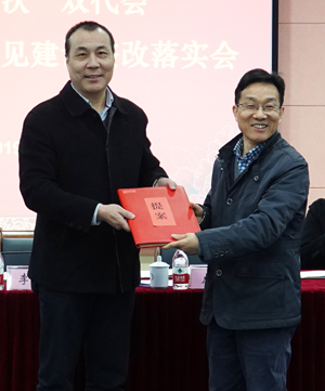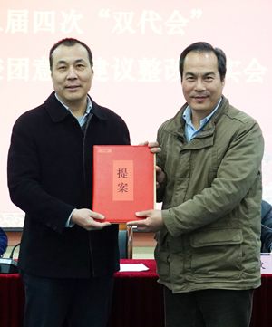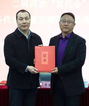 会议举行了二届四次“双代会”提案交办仪式,李金昌向学校领导班子成员交办了有关提案。