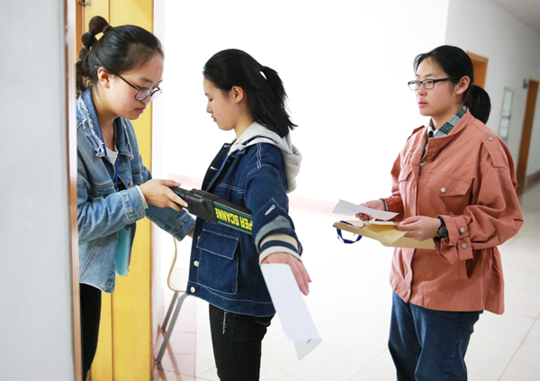 学校还配备了专业设备,设置了身份验证仪、金属探测仪、信号屏蔽仪等多重查验、防控环节,进一步加强了考生的身份验证和考场的规范管理。