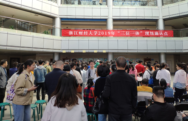 本网讯 4月13日至14日,我校2019年“三位一体”招生综合素质测试在下沙校区举行。党委书记李金昌等校领导来到测试和咨询现场检查指导工作,并与考生及家长进行了亲切交流。