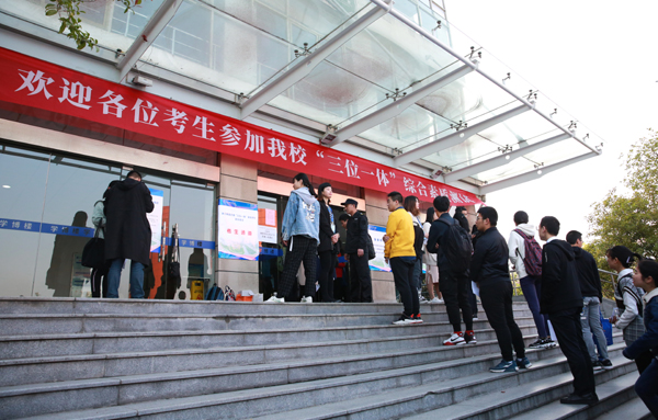 今年,学校“三位一体”首次实行分类报考,分为综合类和国际合作类,满足不同考生的报考需求,进一步强化“宽口径、厚基础、强应用、个性化”培养,考生可选择的范围和机会进一步增加。共有8120名考生注册报名,较去年增长211%。经资格审查和遴选,共有3091名考生获得测试资格,面试人数与招生计划比达到8:1,其中综合类入围2679人,国际合作办学类入围412人。