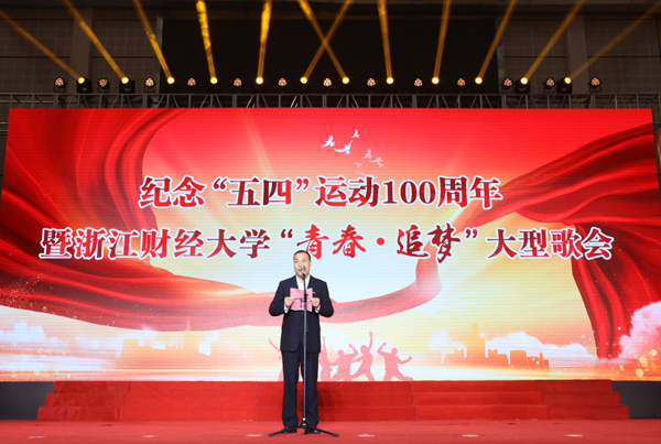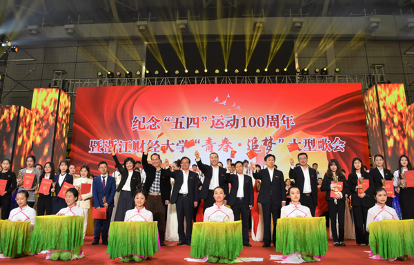 本网讯 4月28日,学校纪念五四运动100周年大型歌会在下沙校区举行。党委书记李金昌等校领导、部分职能部门负责人、各学院分管学生工作副书记及师生代表等1600余人参加活动。