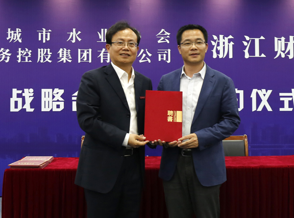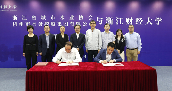 本网讯 近日,学校与浙江省城市水业协会、杭州市水务控股集团有限公司签署战略合作协议。校党委副书记黄建新,省特级专家、中国政府管制研究院院长王俊豪,浙江省城市水业协会会长、杭州市水务控股集团有限公司董事长叶淦平等出席签约仪式。
