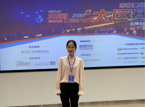 本网讯 近日,第八届全国口译大赛(英语)东部赛区决赛在南京师范大学落下帷幕。经过激烈角逐,我校外国语学院2016级英语专业朱佳怡同学喜获三等奖,陆萍、刘淑红老师荣获“优秀指导教师”称号。