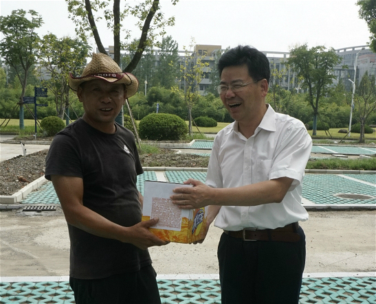 本网讯 8月19日,副校长励如孟看望慰问暑期维修改造项目施工人员,并送上了慰问饮品。