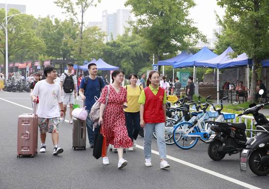 校园内车流穿梭,迎新现场人头攒动,宿舍楼前热闹非凡。“接站的老师、志愿者真得特别热心,她们耐心细致地答疑解惑让我觉得学校很温暖。”一位云南的新生家长表示,把孩子托付给学校很放心!