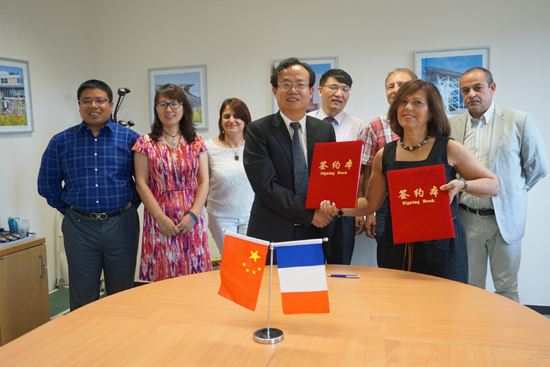 法国普瓦提埃大学副校长博格尼和我校副校长黄建新代表两校签约。签约仪式上,双方并就两校合作办学模式、项目实施以及发展前景进行了深入交流。根据合作办学协议,双方将在互信互利的基础上,开展包括人才培养、科学研究、师资提高等方面的合作。