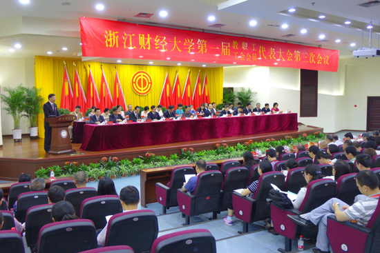 本次“双代会”是在学校发展进程中承上启下的关键之年召开的一次重要会议;是在学校提出建设国内一流、国际知名、特色鲜明的创新创业型财经大学的宏伟目标召开的一次重要会议。这次大会既是一次团结、务实、奋进的大会,更是一次凝聚人心、汇集智慧、谋划新篇的大会。大会号召,广大教职工要进一步统一思想,明确目标,同心同德,努力开启建设高水平创新创业型财经大学的新征程,奋力开创学校事业发展的新辉煌,为浙江省继续走在前列作出更大贡献!