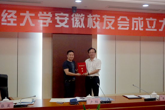 大会还举行了授旗仪式和校友互动。新当选的会长、执行会长、副会长纷纷发表了饱含深情的讲话,分享了自己在安徽创业、工作的经历,重温了在学校难忘的时光。大家一致认为,安徽校友会的成立为安徽校友与母校架起了一个全新的沟通桥梁,在皖奋斗的财大人将尽自己最大的努力,让这个桥梁发挥更大的作用,让最美最真的财大精神遍洒皖江大地。大家纷纷表达了对母校的感激之情,对学校近几年所取得的成就感到骄傲和自豪,对校友会的成立感到温暖欣喜,祝愿母校再创辉煌。