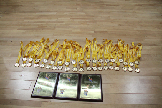 我校代表队分为甲丁两组共28名运动员参加此次比赛。在激烈的比赛角逐中,我校游泳健儿表现出色,最终获得甲组团体第一(19金2银6铜)、丁组团体第一(7金5银7铜),共26金7银13铜的历史性佳绩,其中甲组破7项省大学生游泳比赛最高纪录、破9项省大运会赛会纪录。此外,运动队还获得了“体育道德风尚奖”的荣誉称号,左宇飞老师获得了“优秀教练员”称号。