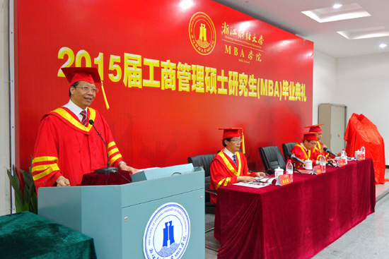 7月5日上午,MBA学院2015届工商管理硕士研究生毕业典礼在文华校区学渊楼202报告厅隆重举行。校党委书记陈根芳,副校长卢新波、黄建新,校长助理、东方学院院长黄董良等领导出席庆典,党校办、研究生处、MBA学院等相关职能部门负责人、导师代表、毕业生代表及毕业生家属代表出席仪式。典礼由卢新波主持。
