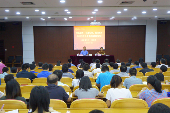 7月13日上午,校党委书记陈根芳为机关部门全体教职工作了题为《明确职责、找准标杆、优化服务,持续推进机关作风和效能建设》的辅导报告。报告会由校党委副书记王宇航主持。机关部门全体教职工参加了报告会。