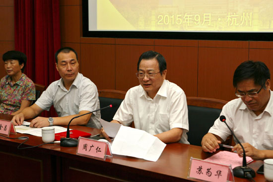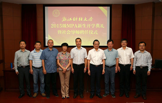 9月18日上午,2015级MPA新生开学典礼暨社会导师聘任仪式在文华校区MPA教育中心举行。省国税局局长周广仁,省地税局原常务副局长、正厅级巡视员单美娟,校长李金昌及相关职能部门、学院负责人等出席典礼。典礼由副校长苏为华主持。