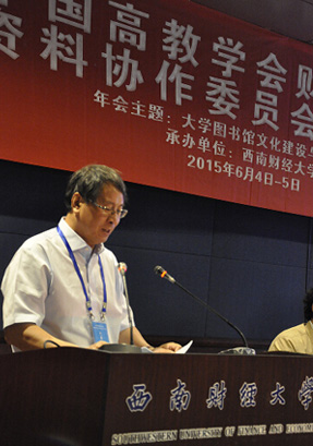 近日,由中国高教学会财经分会图书资料协作委员会主办,西南财经大学图书馆承办的以“大学图书馆文化建设与价值实现”为主题的“全国高教学会财经分会图书资料协作委员会2015年年会”在成都召开。来自全国38所财经院校和四川省内十余所高校图书馆的领导和专家以及各大数据商专家等135人参加会议。我校图书馆作为中国高教学会财经分会图书资料协作委员会秘书处单位,参与本次会议的筹备组织工作和优秀论文评选工作。