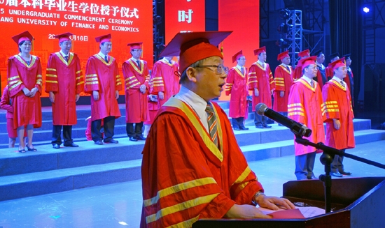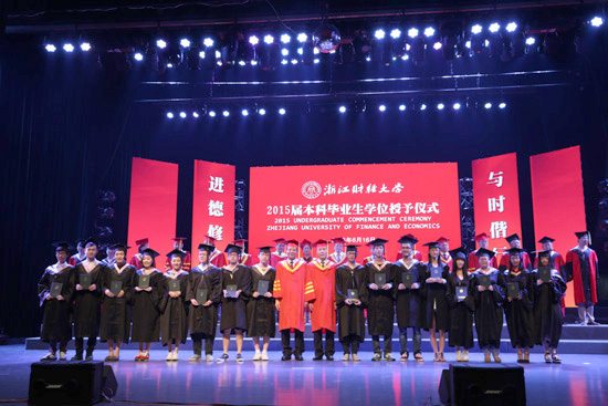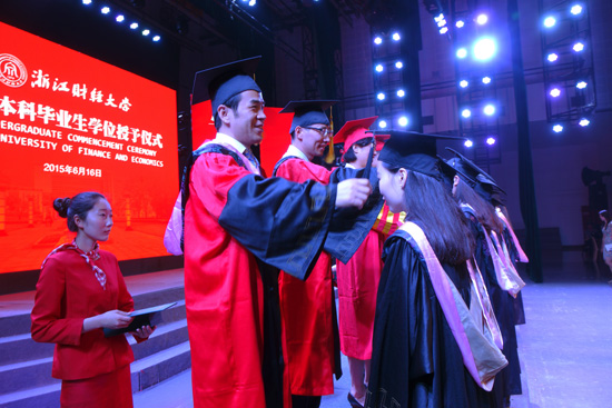 6月16日,学校在文化中心剧院隆重举行2015届本科毕业生学位授予仪式。校党委书记陈根芳,校长李金昌,校党委副书记王宇航、钟晓敏,副校长苏为华、卢新波、黄建新,纪委书记陈金方,副校长王奎泉,东方学院院长黄董良,校党委委员钟平、徐晓东、邵毅平及各学院相关领导、导师代表和2015届全体本科毕业生出席了仪式。学位授予仪式共分为四场,由党委副书记钟晓敏主持。