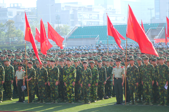 9月10日清晨,伴随着雄壮激昂的国歌和初升的旭日,我校2015级新生统一身着军装,在西操场列队整齐参与隆重的军训动员大会。