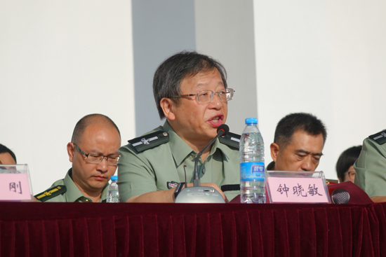 钟晓敏首先向参与本次军训动员大会的武警浙江总队直属支队的领导及承担本次军训任务的全体官兵表示了热烈的欢迎、崇高的敬意和真挚的问候。他要求同学们要培养吃苦耐劳、顽强拼搏的精神,以严肃认真的态度,高质量高标准地完成军训要求,在军训中树立正确的社会主义核心价值观,成为有组织、有纪律的人。