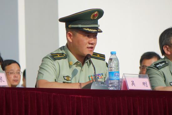 武警浙江总队直属支队副政委、军训师师长吴刚少校,军训师政委、校党委副书记钟晓敏教授,军训师副政委、副校长苏为华、王奎泉,以及相关部门负责人、团的各位干部和各营各连指导员出席大会。大会由苏为华主持。