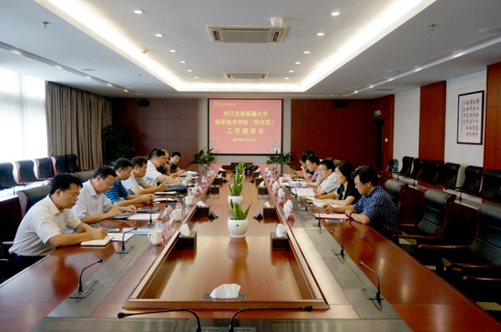 卢新波代表学校对考察组来访表示热烈欢迎,并介绍了学校概况和结对帮扶相关项目进展情况。杨东禄代表考察组对学校表示感谢,并简要介绍了新疆大学科学技术学院的筹建情况。座谈会上,双方就我校结对帮扶新疆大学科学技术学院相关事宜进行了深入的交流探讨,并达成共识。