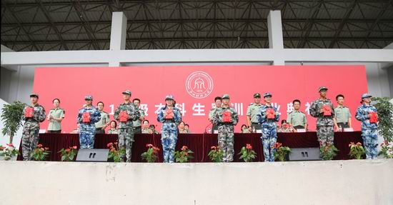 徐晓东宣读了《关于表彰2019级本科生军训先进集体和先进个人的决定》。出席结业典礼的领导为受表彰的先进集体和先进个人代表颁奖。