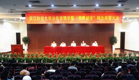同日下午,公共管理学院组织全体师生召开了“不忘初心、牢记使命——崇教诚学”师生共誓大会。师生代表围绕“崇教尚学的初心、育才报国的担当”这一主题就树立优良教风、学风和作风作交流发言。