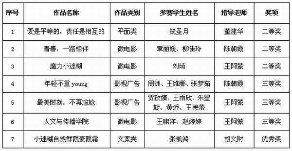 本网讯 近日,第十一届全国大学生广告艺术大赛全国总决赛结果揭晓,学校共荣获7项全国奖。其中,二等奖3项、三等奖3项、优秀奖1项,实现了在该项赛事获奖质量和数量上的新突破。