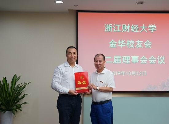 会议还通过了金华校友会第二届理事会名单,李金昌为新当选理事会成员颁发聘书。