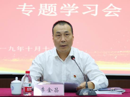 校党委书记李金昌作专题发言,他指出,今年是新中国成立70周年,也是学校建校45周年,是落实“双一流”建设战略,实施高等教育强省战略的关键之年。全校党员干部要以习近平新时代中国特色社会主义思想为指引,始终做到旗帜鲜明讲政治,把党的政治建设摆在首位,进一步把准政治方向,夯实政治根基,涵养政治生态,提高政治能力,永葆政治本色,始终在政治上过得硬、靠得住、强起来,大力建设“清廉校园”,营造更加风清气正的政治生态和育人环境。