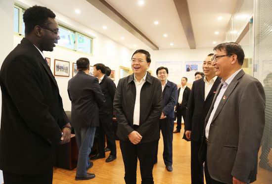 黄建发一行先后走访了大数据实验室、国际学院,详细了解学校在大数据实训平台、应用新技术培养财经类创新创业人才等方面情况,并与留学生进行交流。