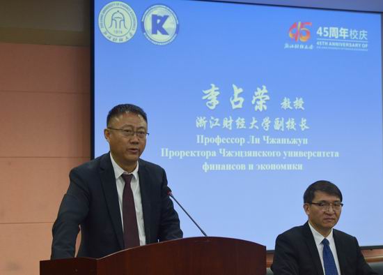 副校长李占荣在致辞中简要介绍了学校在国际化办学以及留学生教育方面的基本情况。他指出,学校多年来坚持开放办学,积极践行“一带一路”倡议,在深化中哈友好交流合作方面效果显著。全国财经院校“一带一路”教育国际化产学研合作联盟的成立不仅能加强联盟内部成员单位和个人之间的交流和合作,也为弘扬丝路精神、推进“一带一路”沿线国家人文交流和国际教育合作提供了良好平台。