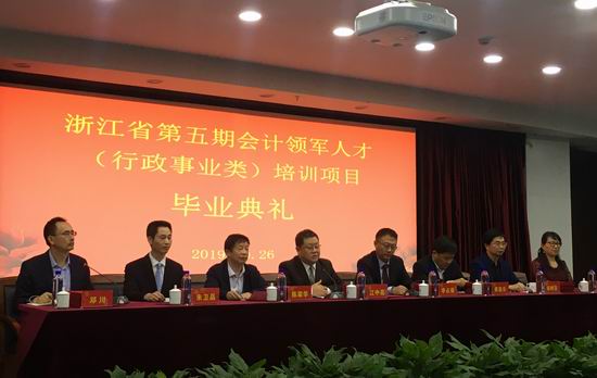 本网讯 10月26日,省第五期会计领军人才(行政事业类)培训班毕业典礼在我校下沙校区举行。副校长李占荣、省委人才办副主任黄勤乐、省人力社保厅专技处处长陈荣华、省财政厅会计处处长江中亮等出席毕业典礼。